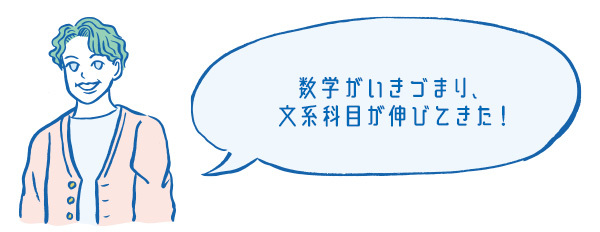国公立大学の受験に向けて、文系科目の勉強をしていたらそれらの成績が伸びてきたので、高2の夏の模擬試験の結果を見て、文転を決断しました。