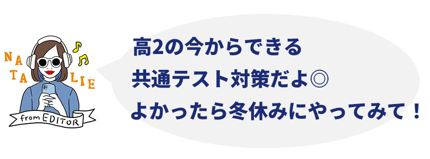 高2のうちから長文に慣れたり、語彙力を増やしておいたりすると、共テ対策にもなるよ。