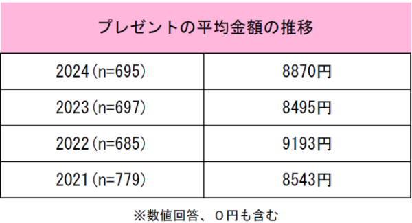 去年のプレゼント平均額は8870円に微増