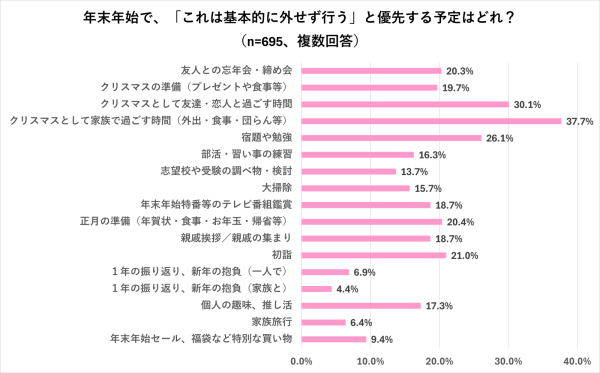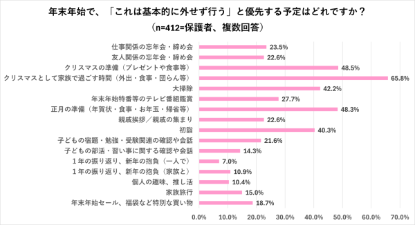 保護者→年末年始で一番優先したい「家族とのクリスマス」
