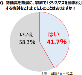 保護者の人もクリスマスを楽しみに大事にしているのがわかった反面、実は無視できない物価高。今回の調査でも物価高を背景に家族でのクリスマスを簡素化することを検討した経験がある保護者の割合は、約4割にのぼることが判明したよ。