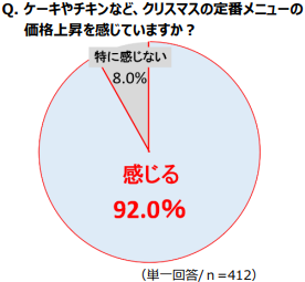 定番メニューの価格上昇を実感している人は92%を記録。