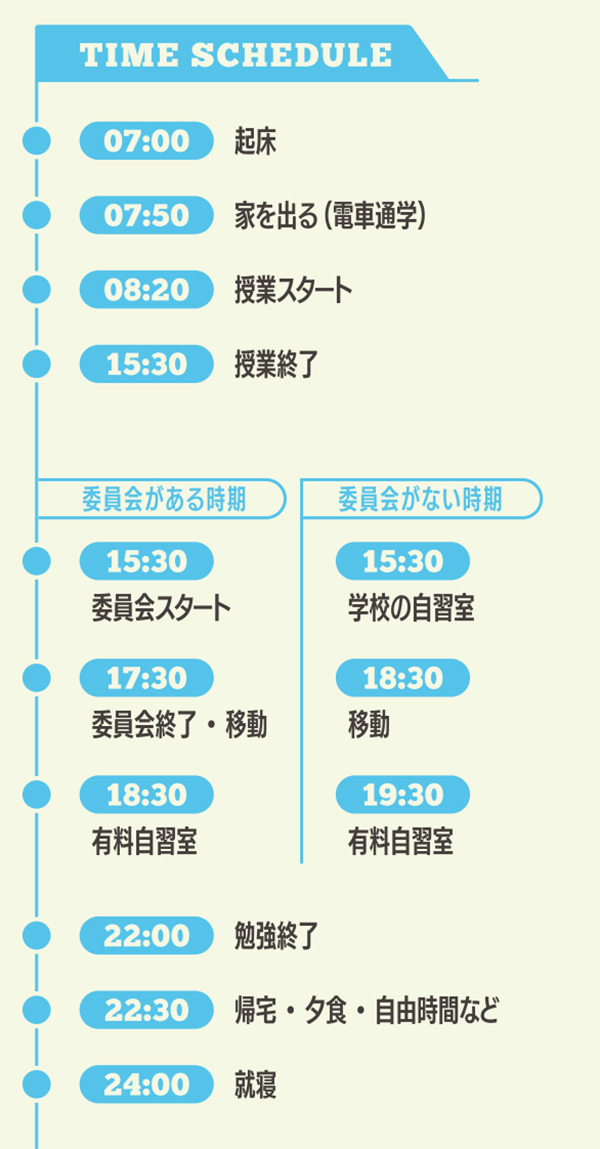 総務委員長として、8~9月末まで文化祭の進捗管理や予算などをしていたので、勉強が進まないあせりが…。手帳の時間軸にやることを書き出して進捗管理をしたり、委員会後は自習室に直行したりしていました。
