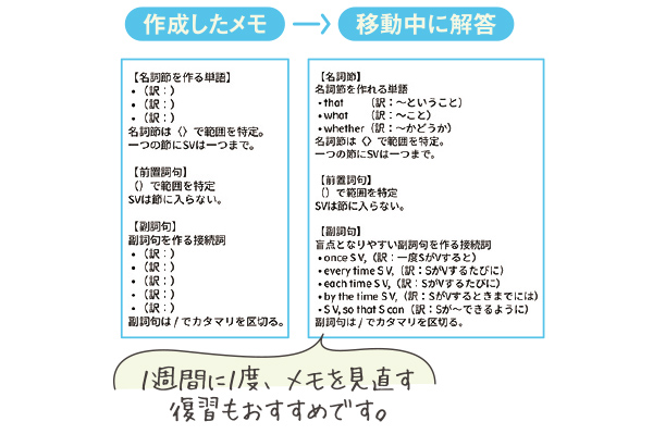 通学電車内では英単語帳、信号待ちではメモをチェック